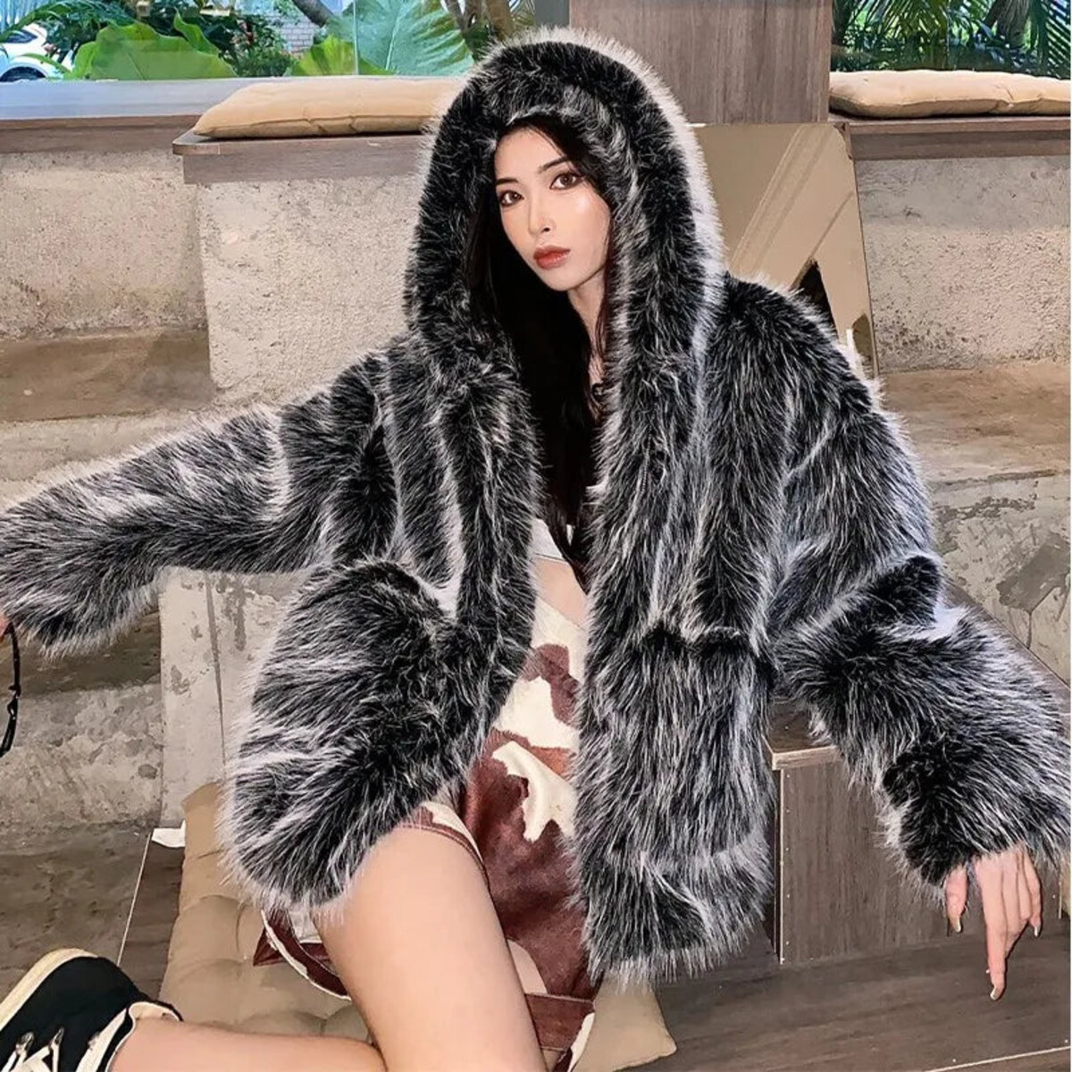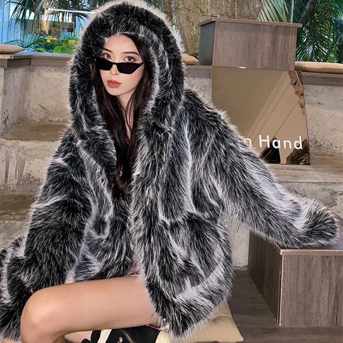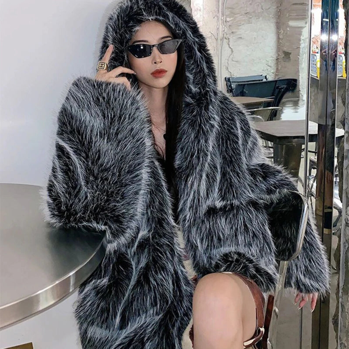 If there’s a way to look like a literal wolf wrapped up in cashmere, this is it. Go big, go bold, or go home in this extraordinarily oversized faux fur coat. It’s the sort of plush extravagance that instantly transports you to a Moscow billionaire’s ski chalet or perhaps an episode of Selling Sunset - there are levels to this kind of luxury. The fur is strikingly realistic and visually abundant - absolutely decadent with a texture that is impossible not to stroke. An equally dramatic and voluminous hood means you can casually channel Little Red Riding Hood if she’d managed to make off with the wolf’s coat, and get away with it.