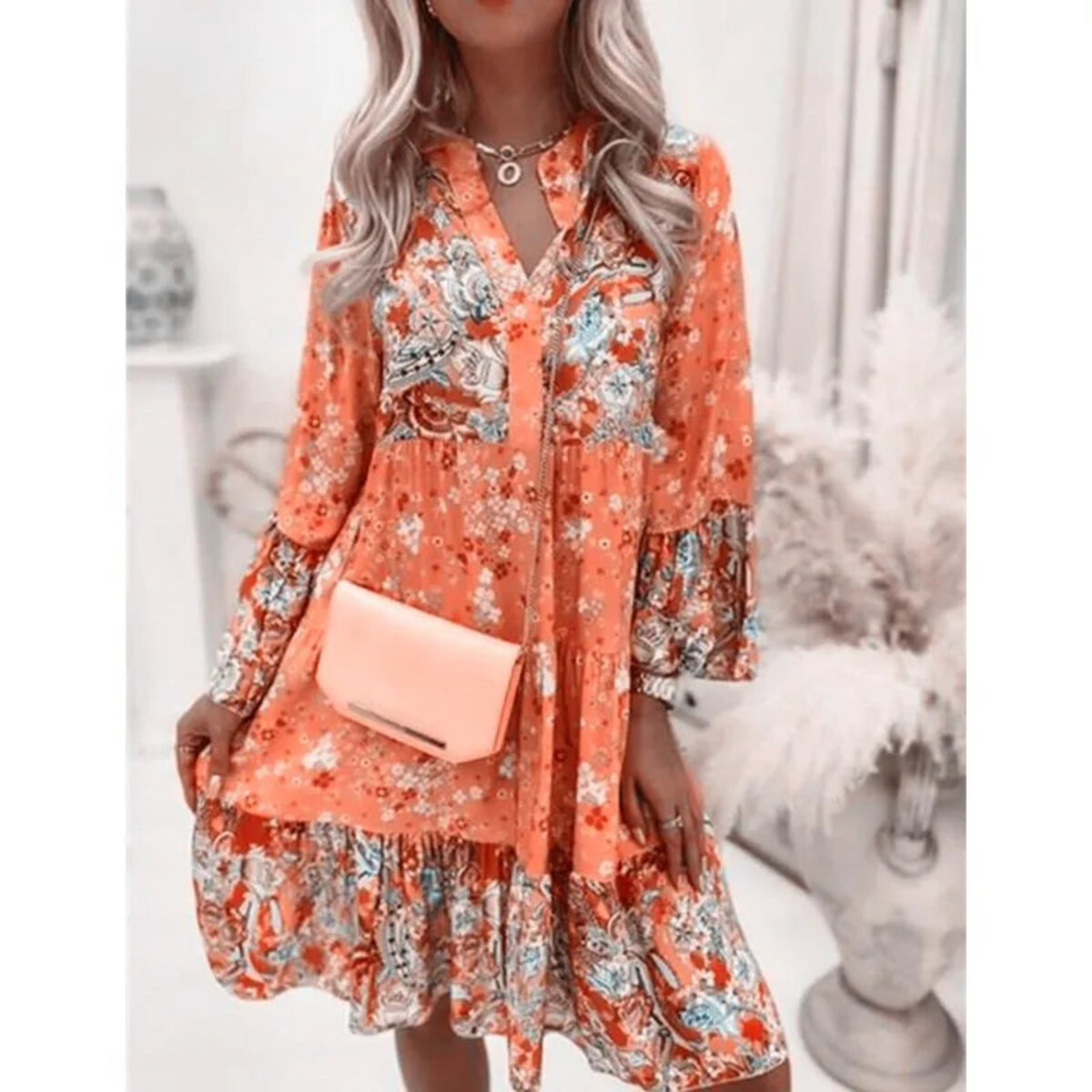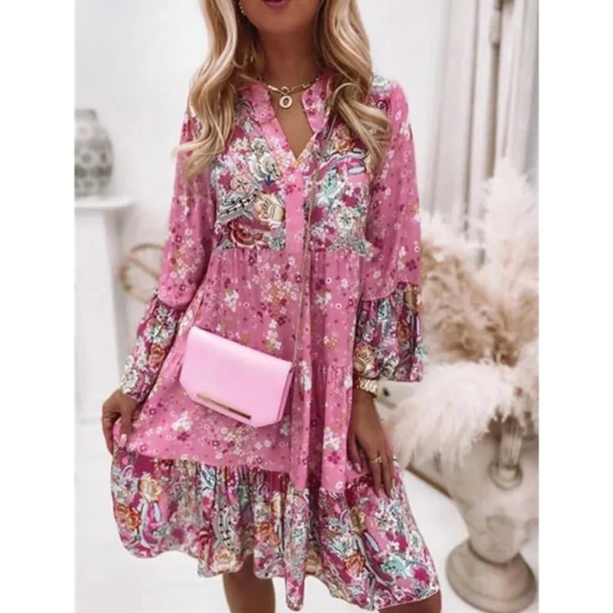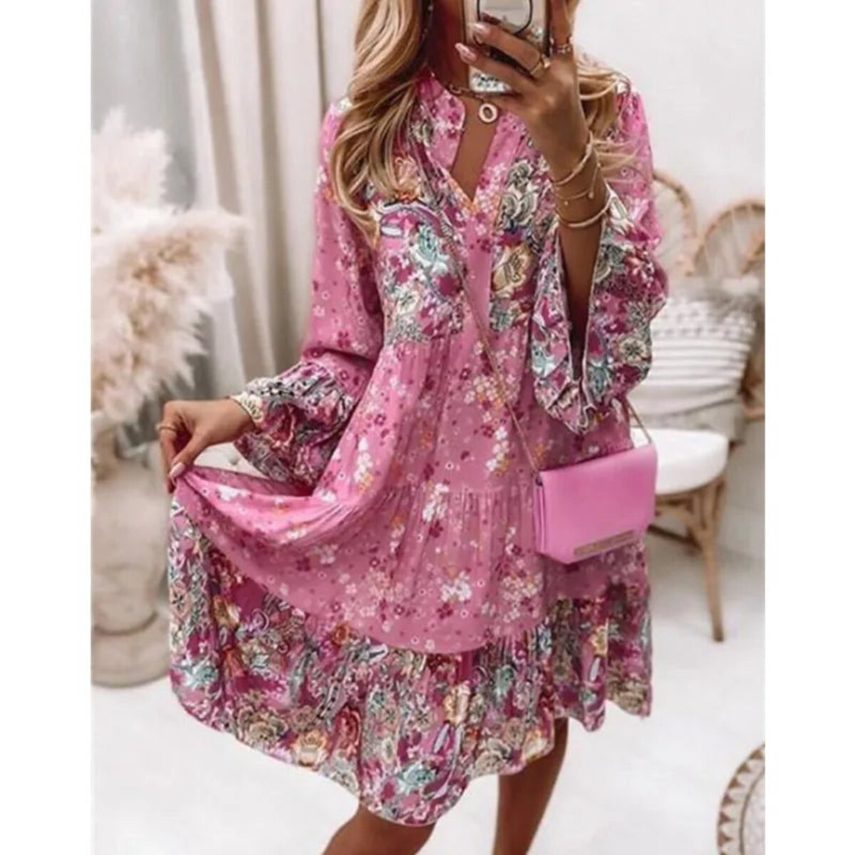 Breezy boho style - yes, please! This relaxed, flowing Blossom Vibe Dress doesn’t just gently hug the body, it takes a bit of a hippy trip around it. It’s got that loose, tiered silhouette that gives off more than a hint of flower-child energy - albeit with a lot more polish and loads more respect for personal hygiene. The V-shaped neckline (modest, but with just the right amount of cleavage on offer) keeps things light and breezy around the collarbone, while the banded detail and buttoned front add interest to the bust.