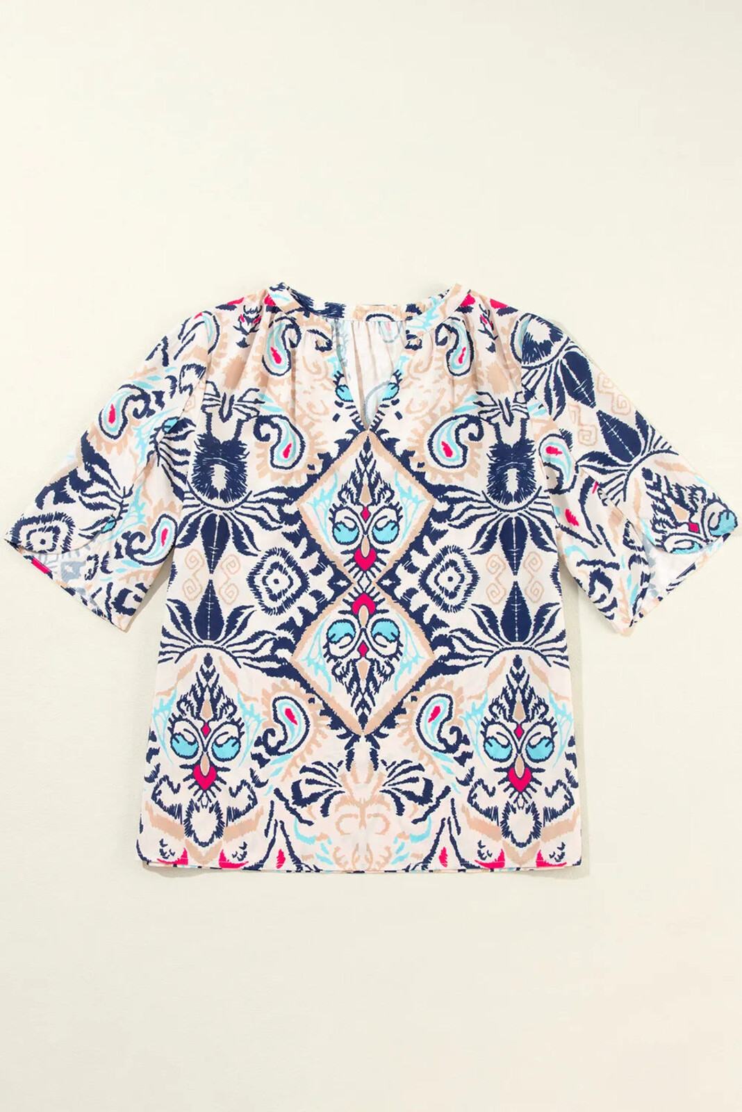 Bring out the silk scarves and bucket hats for the escapist in all of us - the Boho Chic Blouse is where our bohemian fantasies come to life. The top features a relaxed silhouette, flared half-length sleeves, and a soft, lightweight drape that floats gently around the body. It’s almost like throwing on a caftan without looking like you’re late for your child’s costume party. While you may be wondering what makes this any different from other boxy tops, it lies in the details: the V-neckline with an adorable notch adds character, while gathers at the neckline create a soft billowing effect that flatters every body shape.