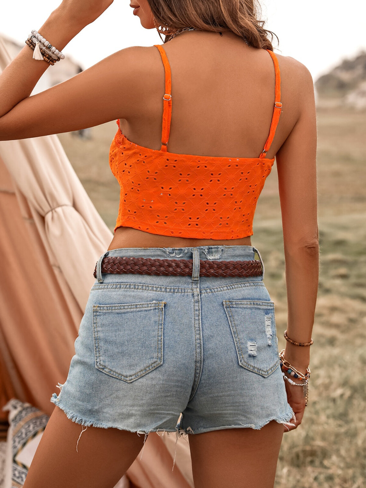 Now, eyelet tops are having a moment. But this one? An absolute stand-out. This cropped top with its ruffled peplum hem is like the cool girl’s answer to what to wear when you want a flirty edge but still want to feel like a grown-up. The double-layered ruffle at the hem is both cheeky and forgiving - great for giving a bit of waist definition without any cling. And then there’s that dramatic V-neckline, which manages to stay pretty thanks to the soft lace trim, while also being just deep enough for people to wonder if you’ve had work done - in a good way.