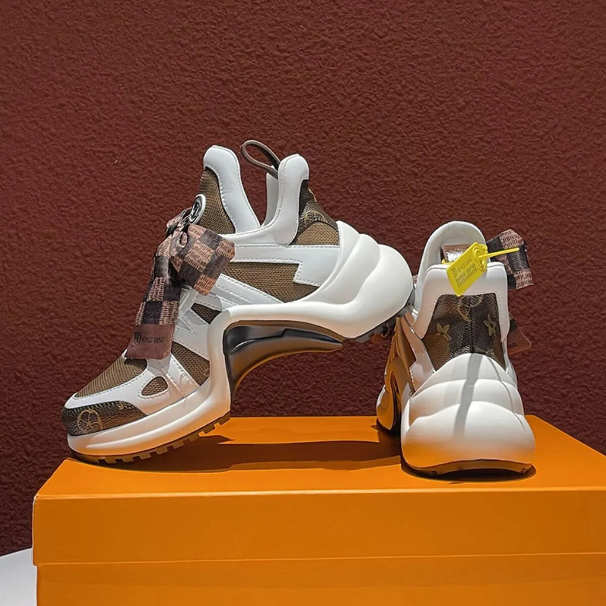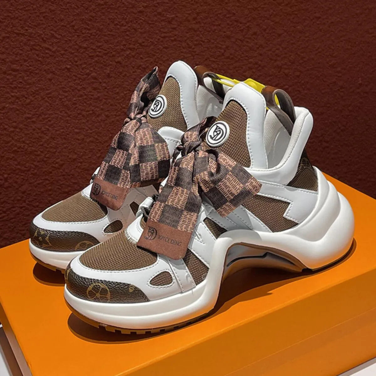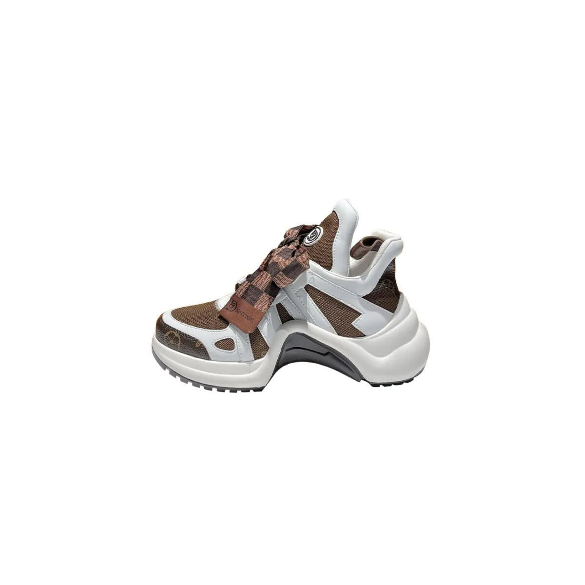 It’s an epic name for a futuristic trainer, but ‘Cocoa Surge’ is exactly that - it’s the trainer with a vision. Not that trainers can see but if they did - this would be it. It’s bold, sculpted silhouette echoes some sort of utopian future where everyone wears statement trainers and spends their days running around the city being creative in between attending TED talks. This is as bold as I get. Now, let’s talk about the materials - because these bad boys boast premium quality materials. Both models, the all-white and brown-themed variety, feature Joyce Deng branding near the toe and a textile upper that blends mesh and leather overlays for a layered aesthetic.