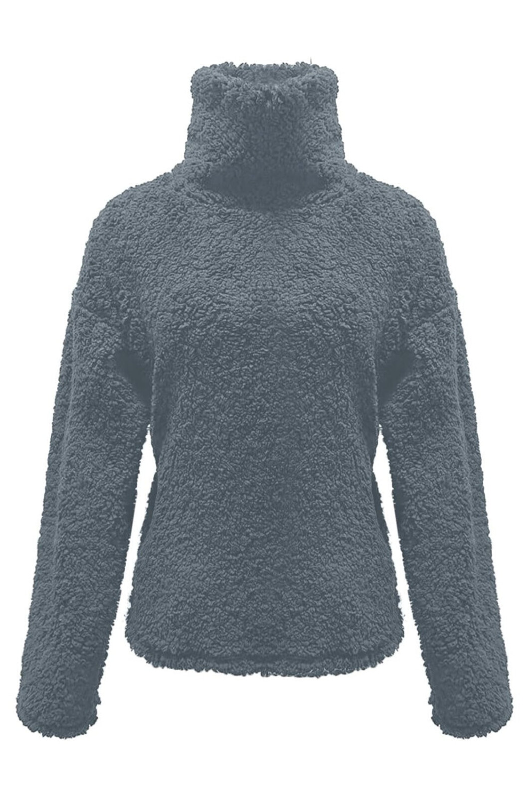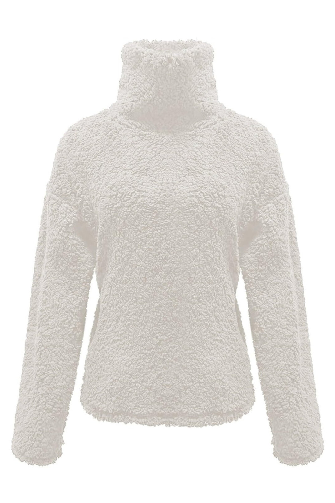Soft, nubby, faux-shearling. Wrap those words around you and luxuriate in how blissfully squishy this jumper is. The high turtleneck is cowl-like for a cosier sensation, but keeps it slouchy, not suffocating - a rare find with most warm jumpers. The relaxed fit and roomy cut make layering up with your other favourite pieces even easier, while the slightly dropped shoulders add a subtle laidback vibe that brings the whole ensemble together. For lazy winter mornings or cool autumn nights, this plush pullover provides all the comfort you need.