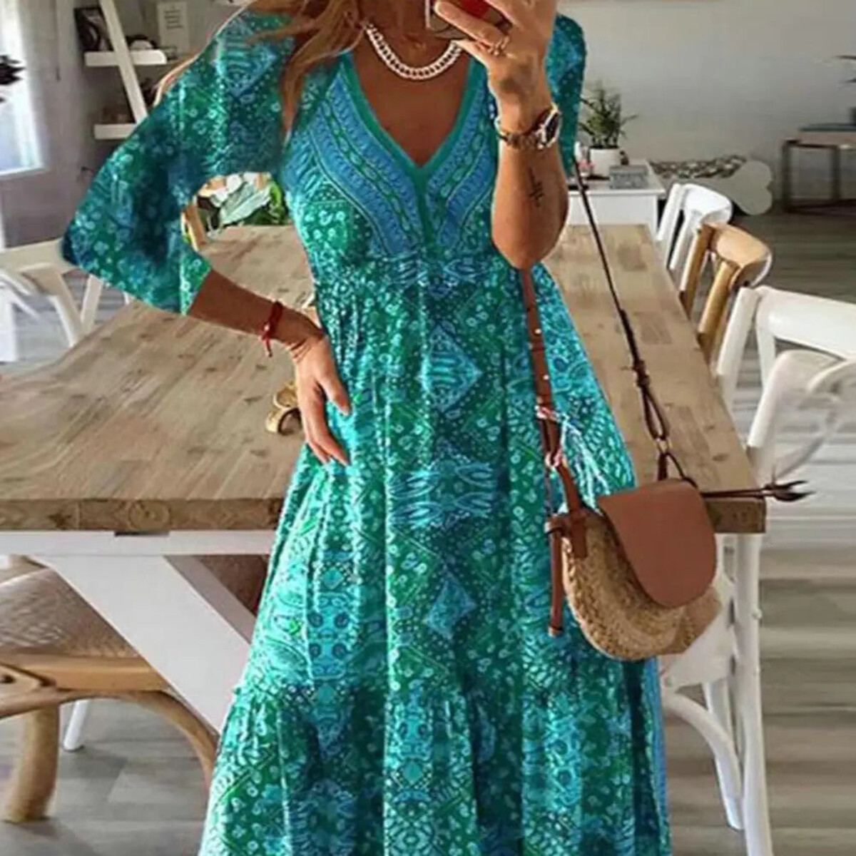 With a neckline that plunges deeper than your ex's self-esteem, this boho maxi is your new festival essential.