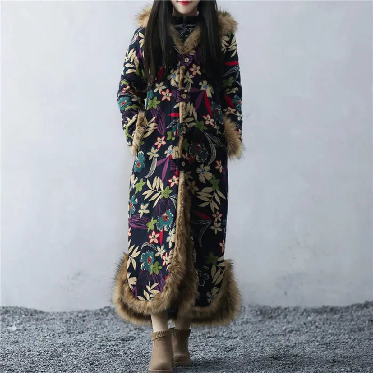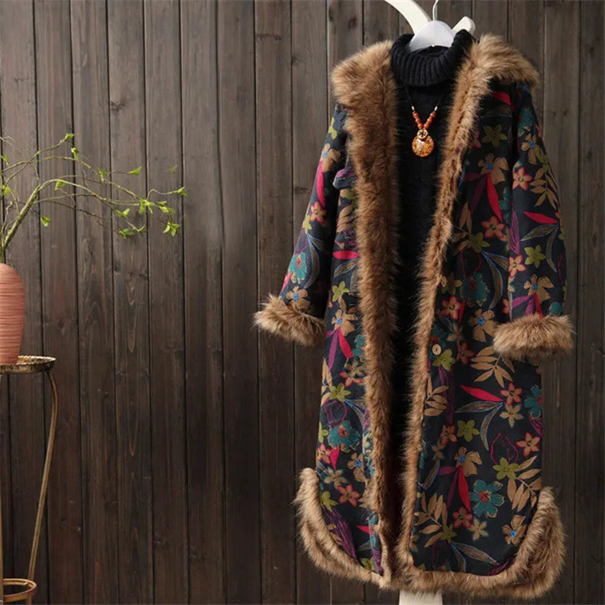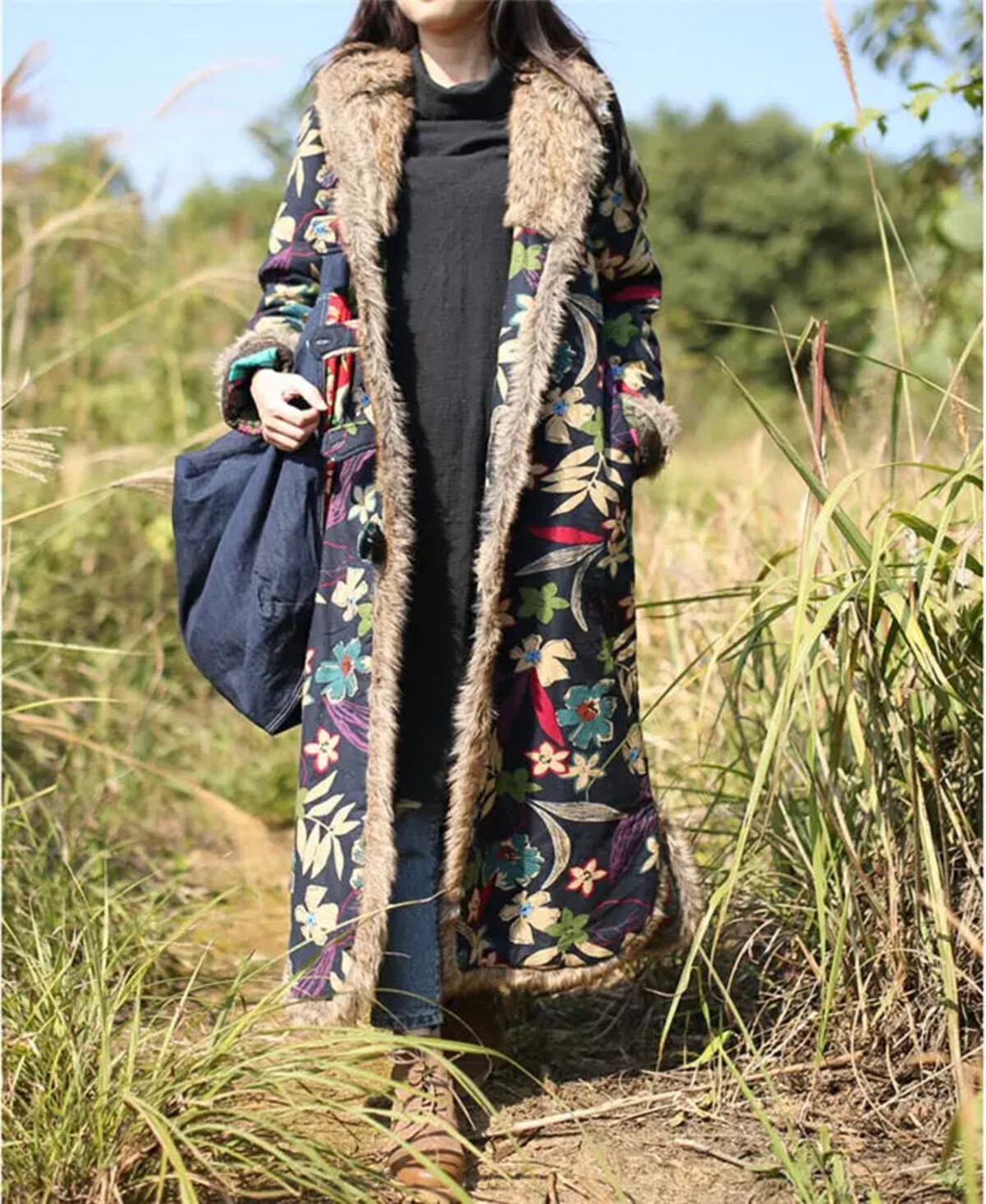 If you’re on the hunt for a coat that’s part theatrical, part old-school opulence, and all-out flamboyant - this vintage-inspired bohemian floral stunner is the ticket to your winter wonderland debut. To say it’s ‘extra’ is putting it lightly. The lush faux fur trim generously traces its way along the edge of the hood, circles the front opening, cuffs, and hemline. It’s a riot of tactile drama - impossible not to have at least one person ask if they can stroke it. There are roomy pockets too (genius), so when you inevitably get tired of fielding the questions or need to stash your gloves and lippy for a dash up to your mate’s house for dinner in the middle of July - there’s room for whatever winter essentials you can’t leave home without.