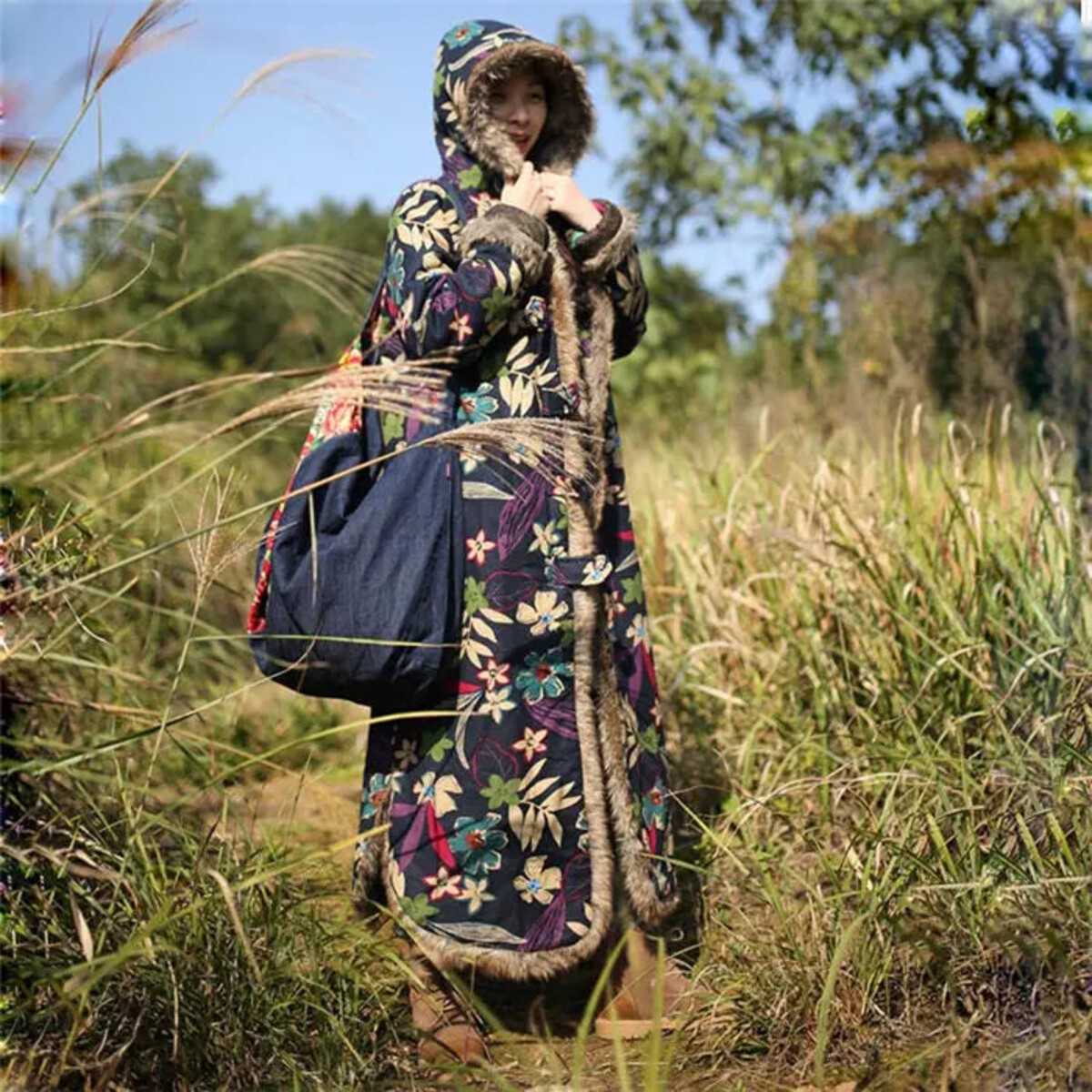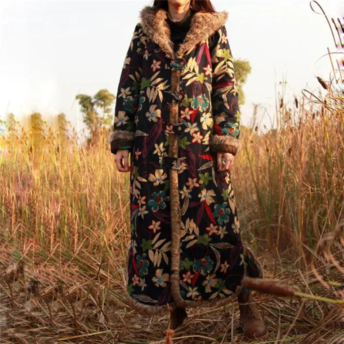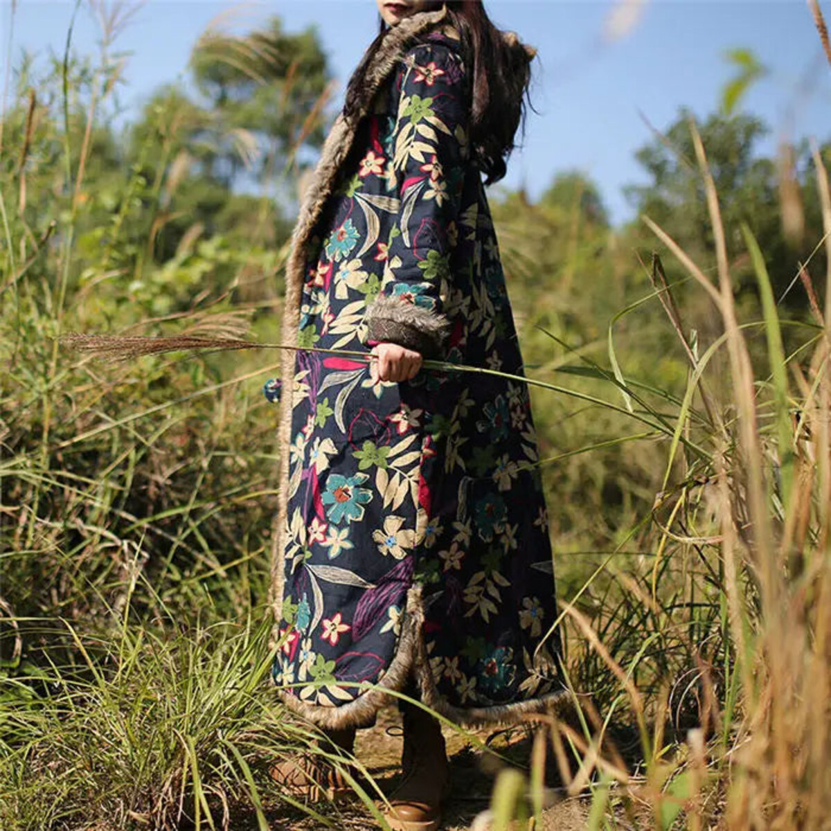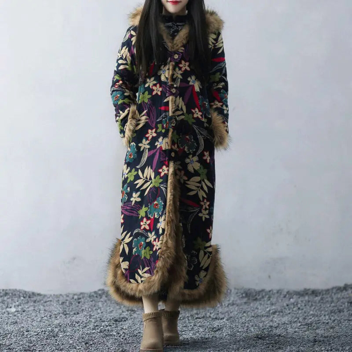 If you’re on the hunt for a coat that’s part theatrical, part old-school opulence, and all-out flamboyant - this vintage-inspired bohemian floral stunner is the ticket to your winter wonderland debut. To say it’s ‘extra’ is putting it lightly. The lush faux fur trim generously traces its way along the edge of the hood, circles the front opening, cuffs, and hemline. It’s a riot of tactile drama - impossible not to have at least one person ask if they can stroke it. There are roomy pockets too (genius), so when you inevitably get tired of fielding the questions or need to stash your gloves and lippy for a dash up to your mate’s house for dinner in the middle of July - there’s room for whatever winter essentials you can’t leave home without.
