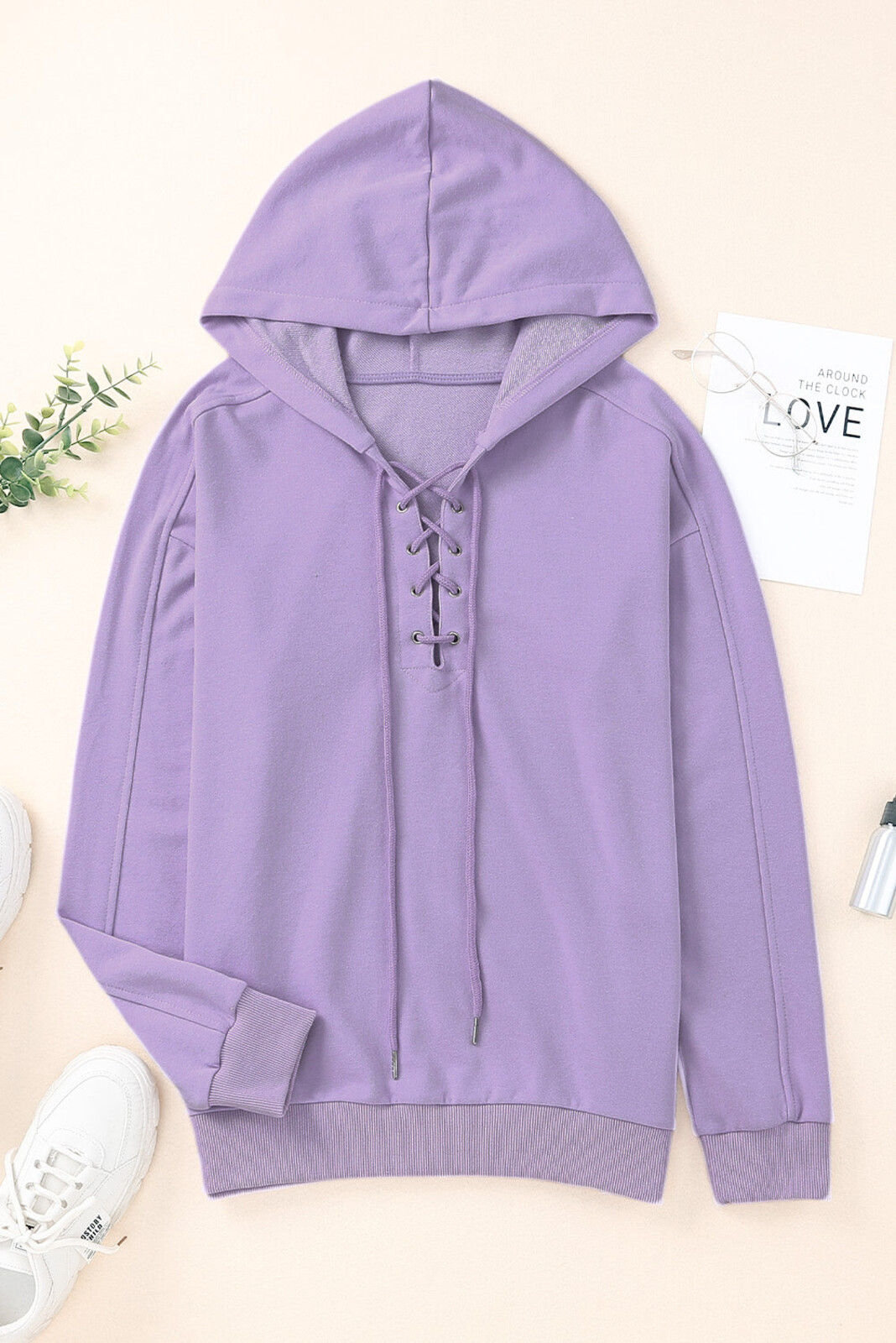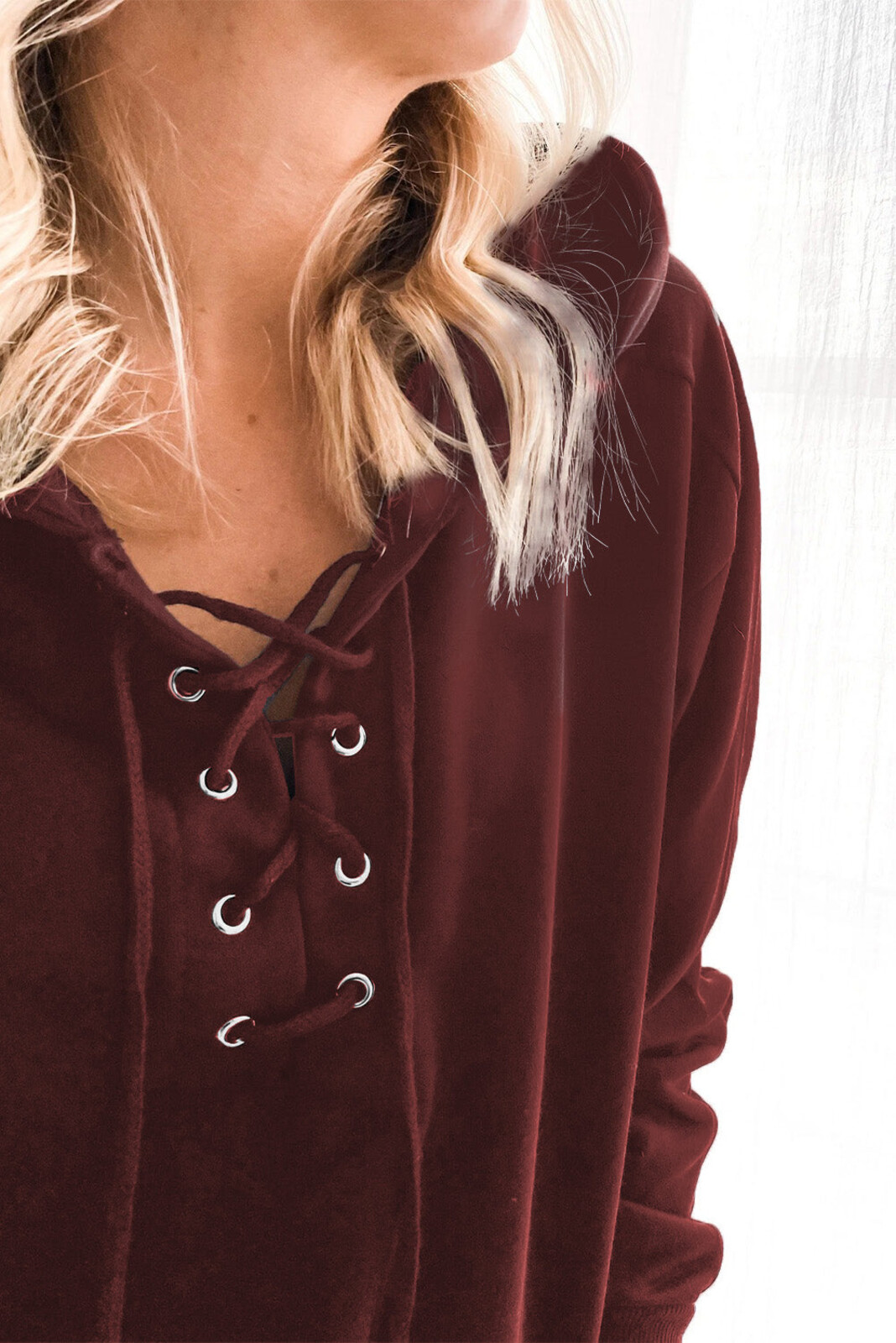 Whoever came up with the laced front on this hoodie, thank you. Someone actually looked at a relaxed pullover and thought: “Could use a hint of corset - oh, but make it casual.” And now here’s this lace-up neckline on a soft, hooded top that not only makes actual string look chic but also brings a bit of attitude to what could otherwise be just another piece of activewear. The fabric feels like pyjamas but with street cred - the kind of knit that sits perfectly between tracksuit pants and the good tee you keep for emergencies.