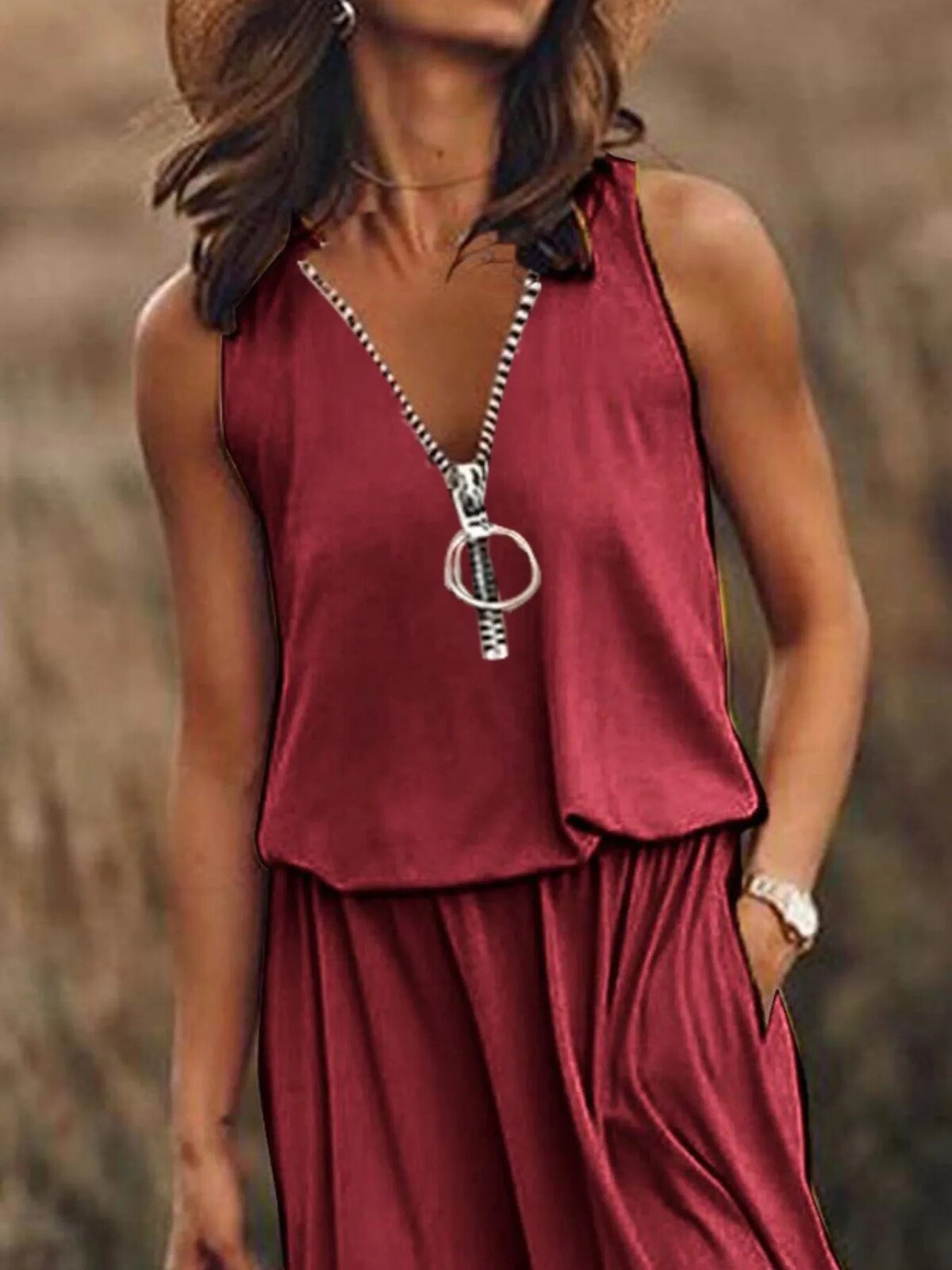 There are dresses that waft in with a slight breeze, and then there are those that announce themselves with the full wind behind them. This flowing maxi is absolutely the latter. The sort of piece that makes one simultaneously dream about strutting through the Paris fashion week scene and getting tipsy at a backyard family barbecue on Sunday arvo. And she’s sleeveless, so there’s no reason to worry about sweating bullets when trying to impress whoever’s in attendance. If someone dares to comment on your dress, ignore them and pull down the metallic zipper at the front to show some skin. Or don’t – it’s up to you.