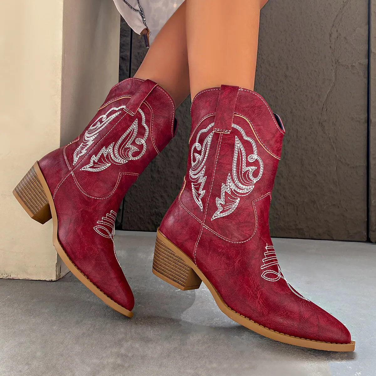 The intricately embroidered patterns jump out against the textured faux leather upper, and while the overall effect is definitely vintage, there’s nothing old-school about these stunning details. The embroidery dances across every panel, ensuring that these boots are ready to pop and dazzle from every angle. Don’t miss the almond-shaped pointed toe paired with that perfectly angled block heel - a winning combination for comfort and style if ever there was one.