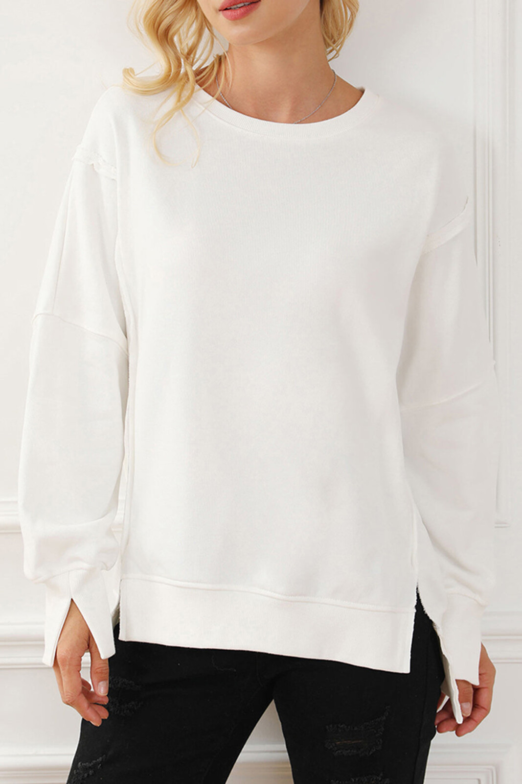 With an off-duty model kind of charm, this is one piece with the look of the season - a not-so-basic pullover sweatshirt. It’s a playful approach to loungewear, combining comfort with an undone, deconstructed edge. The relaxed fit is just right - not too slouchy but definitely nonchalant - so it feels as good as a long lie-in without leaving you lost in fabric.