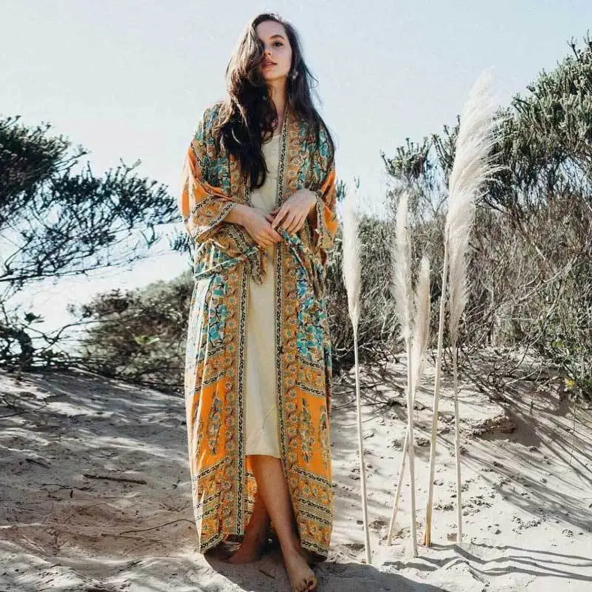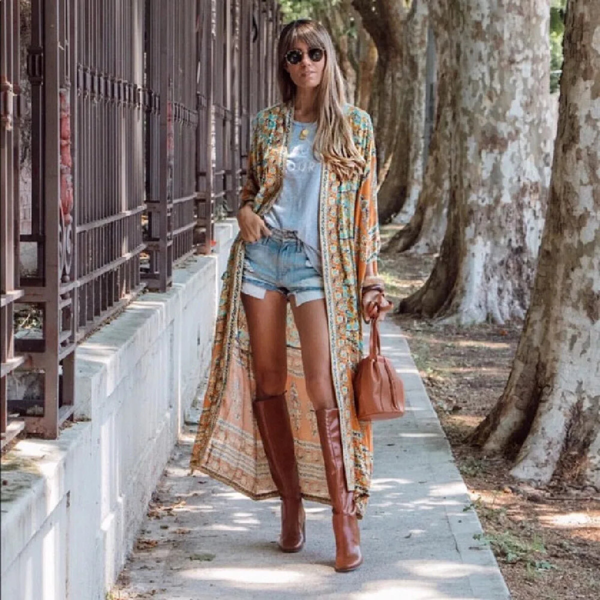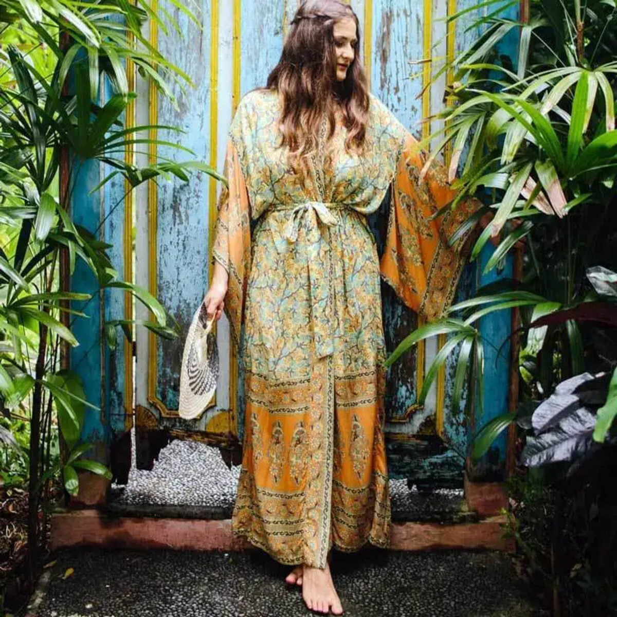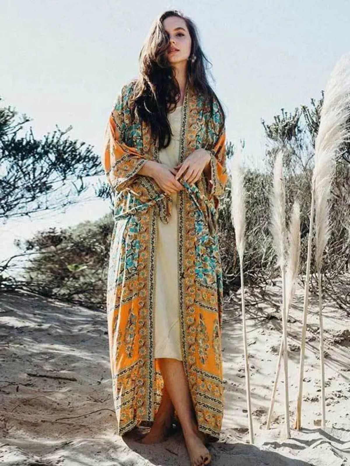 There’s little more liberating than the billow of a well-cut kimono - it’s essentially socially-acceptable pyjamas for grown-ups. But with a twist, of course. This isn’t your average cotton housecoat that’s seen the washing line one too many times. No, this kimono is all about high-end lounge chic - a piece that knows its way round a Friday night dinner and a Saturday morning coffee date equally. It’s floaty, and fabulously lightweight so it’ll easily slip over shorts and swimmers for a touch of beachside glam but can absolutely be worn to the shops without causing a stir. The print is intricate and easy-to-wear, but not at all overwhelming. It’s a clever combination of bohemian shapes and fun repeating patterns that makes this kimono feel as at home by the ocean as it does in the city. And while it feels both luxe and comfortable, it doesn’t have to be styled up with barely-there heels or glittering accessories. Just throw on some leather mules and you’re good to go!
