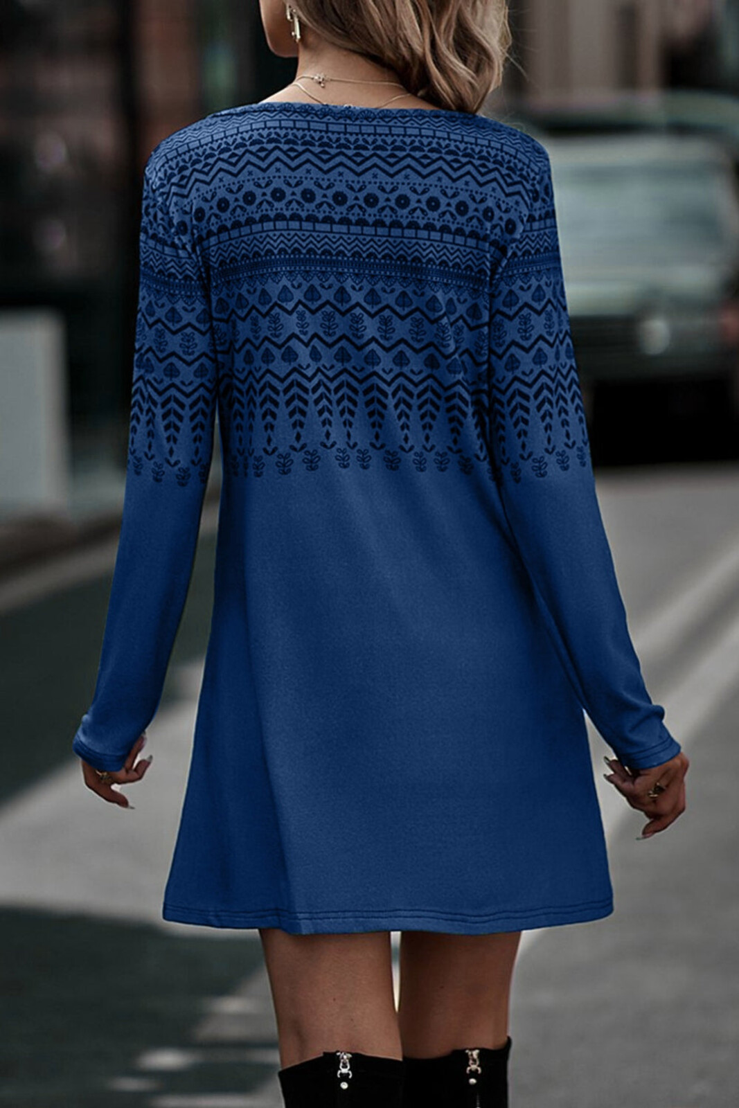 Some might call it a tunic dress. Others - more on the sweater side of the fence. Call it what you will, it’s got that soft, slightly stretchy knit that’s like a wearable invitation to “come in and get comfortable.” And this long-sleeved number delivers on detail. It’s got a finely-woven folkloric pattern of geometrics and botanicals - not too fussy, and cut off at just the right length (upper third) for all those 'who-are-you-wearing' questions without looking like something Aunt Janice crocheted in ‘79. That banded cuff on the sleeve was probably dreamed up by someone who hates fussing with sleeves when eating or gesturing animatedly (tick for both). The A-line silhouette is super flattering and easy, making it a cinch to wear as a mid-thigh dress or as a longer tunic over jeans. Top if off with a round neckline, simple straight hem, and a drape that says ‘I don’t iron’, and you’ve got yourself an earthtone classic worth grabbing in every colour variation you can handle.