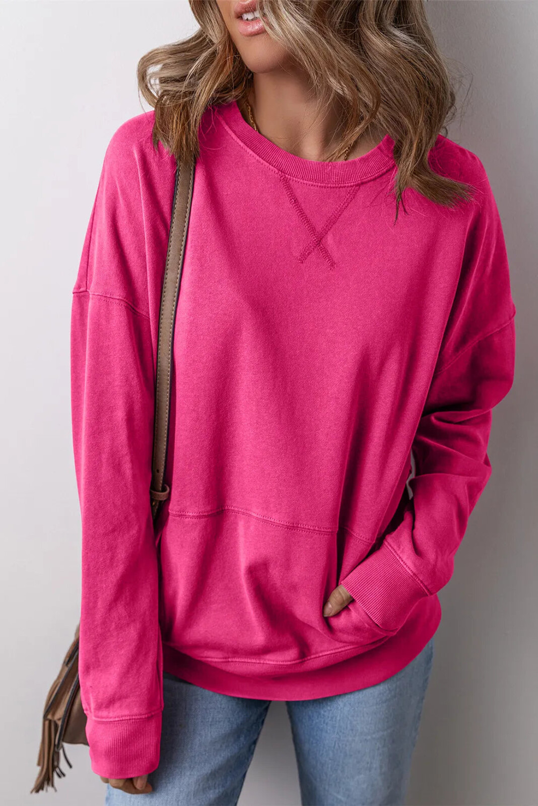 Everyone has their own take on how to do a slouchy, oversized crew sweatshirt. The Urban Moss Oversized Crew does minimalism with just enough visual interest to look thoughtfully thrown on. The silhouette is pure comfort - dropped shoulders and boxy lines for “I left my gym membership behind in 2019” vibes (hello, joy of oversized fits). Somewhere between mid-weight and structured, the fabric hangs softly in all the right places, with enough structure to create gentle volume at the hem and sleeves. A clever stitched kangaroo pocket blends into the front seam for hands-in-pockets insouciance (or maybe you just need a spot to stuff snacks - we see you).